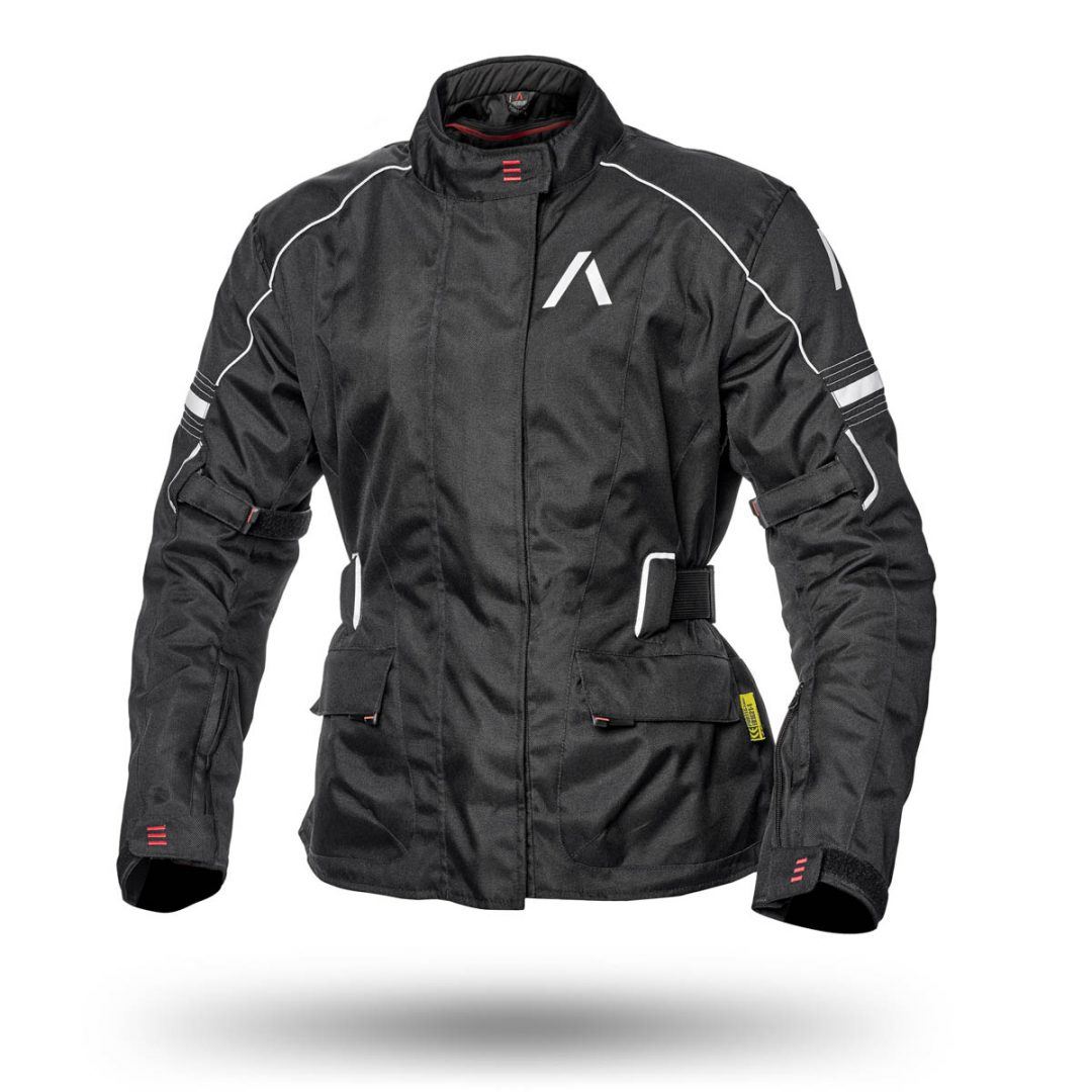 Naiste jaoks mõeldud linna ja matka jope. See on lihtne ja kerge kahekihiline jope ühendab mugavuse ja kõrge turvalisuse taseme. See on valmistatud vastupidavast materjalist Maxdura ning sellel on küünarnuki- ja õlakaitsekomplekt, mis on sertifitseeritud vastavalt standardile CE EN 1621-1. Välimine kiht on integreeritud membraaniga ja selle all on eemaldatav termovooder. Sellel on jope-pükste kinnitussüsteem ja pikem sisseehitatud seljaosa, mis kaitseb selga.